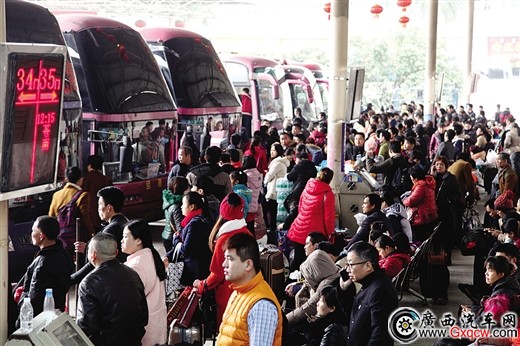 埌東汽車站副總經(jīng)理弄小玲介紹,當(dāng)日該車站的客流量將超過3萬人,多是去玉林、河池、崇左和南寧周邊一些縣份,“主要是回家過年的客流,返鄉(xiāng)農(nóng)民工已經(jīng)不多了,這兩天都是以放假的上班族為主”。