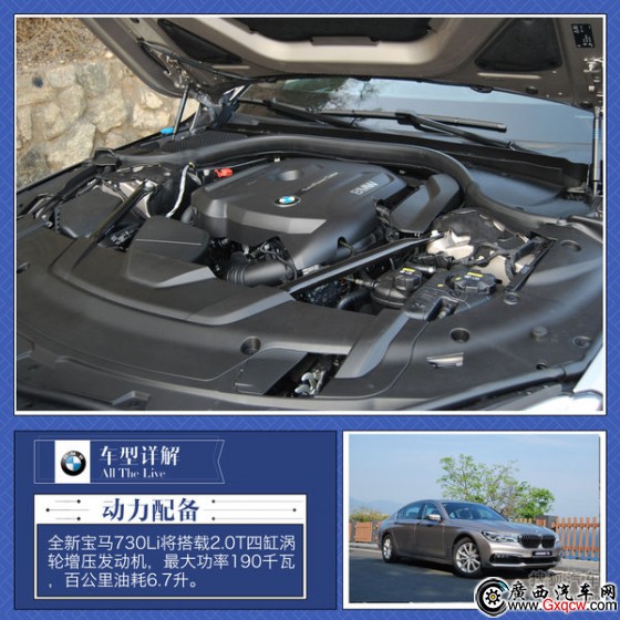 全新寶馬730Li將搭載2.0T四缸渦輪增壓發(fā)動機(jī),其最大功率為190kW/5000-6500rpm,峰值扭矩為400Nm/1550-4400rpm,百公里油耗6.7升,動力參數(shù)輕松勝過了對手的2.5L發(fā)動機(jī)。