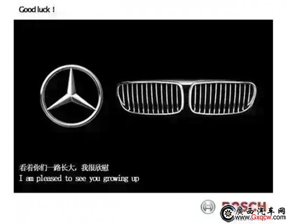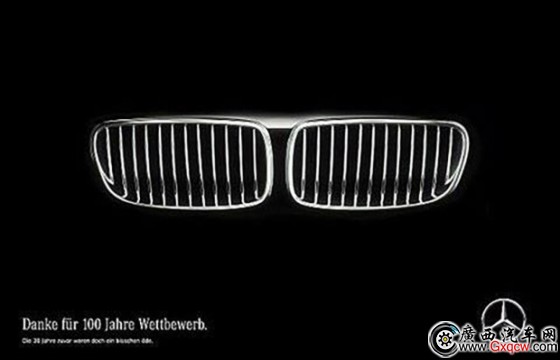接下來另一張奔馳的“賀電”就顯得有些火藥味了,在這張圖中,除了祝賀外奔馳還在左下角用小字寫著:“感謝寶馬100年來的競爭,沒有你的那30年好孤單!痹谙?qū)κ直磉_了尊敬之外,仿佛還說出了:“論歷史,你還是比我短了30年!