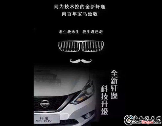 寶馬官方并沒有回應(yīng)奔馳,不過一張據(jù)說是國內(nèi)網(wǎng)友制作的廣告出現(xiàn)在了網(wǎng)絡(luò)上,在這張圖片中,“寶馬”在奔馳的原圖上加了一撇胡須,下面的文案則借用了一句古詩“君生我未生,我生君已老!蔽也聺撆_詞是這樣的:“誰跟你比年紀(jì)了,大叔!我的年輕才是資本!”