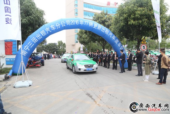 在南寧市第三運(yùn)輸公司黃錦程副經(jīng)理宣布下,南寧市奔騰B50出租車交車儀式正式發(fā)車,排列整齊的奔騰B50出租車車隊(duì)駛?cè)肽蠈幗值,為城市交通增加了一抹亮色?/p>
