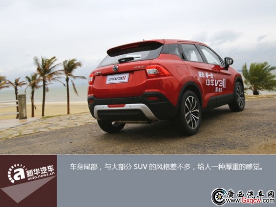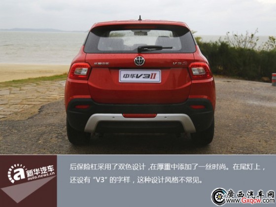車身尾部,與大部分SUV的風格差不多,給人一種厚重的感覺。后保險杠采用了雙色設計,在厚重中添加了一絲時尚。在尾燈上,還設有“V3”的字樣,這種設計風格不常見。