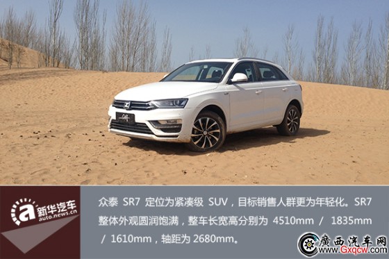 眾泰SR7定位為緊湊級SUV,目標(biāo)銷售人群更為年輕化。SR7整體外觀圓潤飽滿,整車長寬高分別為4510mm/1835mm/1610mm,軸距為2680mm。