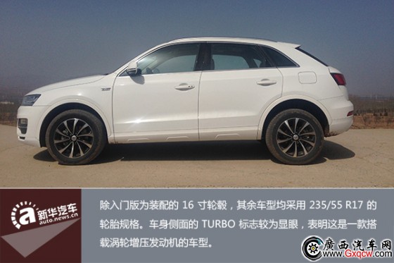 除入門版為裝配的16寸輪轂,其余車型均采用235/55 R17的輪胎規(guī)格。車身側(cè)面的TURBO標(biāo)志較為顯眼,表明這是一款搭載渦輪增壓發(fā)動機(jī)的車型。