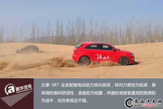 眾泰SR7全系配備電動助力轉(zhuǎn)向系統(tǒng),轉(zhuǎn)向力度較為輕柔,懸架調(diào)校偏向舒適性,底盤較為規(guī)整,傳遞給駕駛者直觀的路感較為適中,綜合表現(xiàn)還不錯。