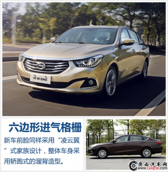 GA6 235T車型同樣延續(xù)現(xiàn)款設(shè)計(jì)風(fēng)格。車身采用了類似轎跑車的“溜背”造型,頂部線條自C柱向后一直延伸至車尾,展現(xiàn)出濃郁的運(yùn)動(dòng)風(fēng)格。前臉部分也同樣采用傳祺家族式“凌云翼”造型,顯得很有層次感,夸張的六邊形中網(wǎng)經(jīng)由上方的鍍鉻橫條與兩側(cè)頭燈相連接,具有極高的辨識(shí)度。廣汽傳祺GA6的內(nèi)飾采用了黑色設(shè)計(jì),搭配貫穿整個(gè)中控的銀色飾板。中控臺(tái)采用偏向駕駛一側(cè)的傾斜設(shè)計(jì),為車內(nèi)增加了些運(yùn)動(dòng)氛圍。