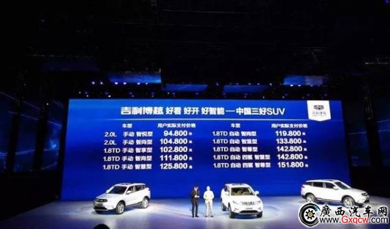 這樣一款帶著誠(chéng)意的“三好”SUV,最后帶給大家的驚喜價(jià)格更是極具沖擊力。算上吉利汽車在現(xiàn)場(chǎng)公布的與國(guó)家購(gòu)置稅減半同期進(jìn)行的全系購(gòu)置稅廠家直補(bǔ)優(yōu)惠政策,兩種排量十款車型的價(jià)格區(qū)間為:9.48萬~15.18萬元。