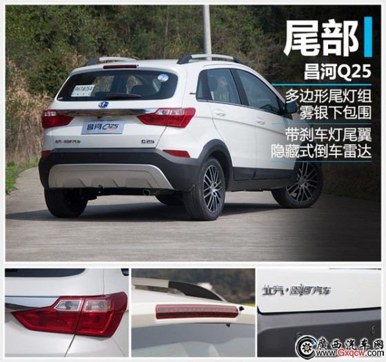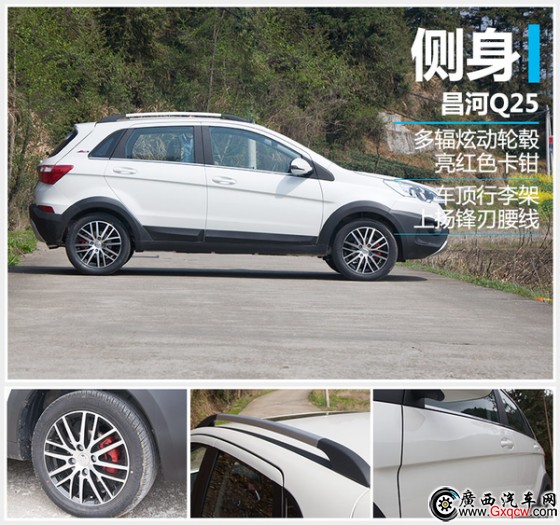 昌河Q25側(cè)身線條干凈利落,腰線由前翼子板處延伸至車尾并微微上揚(yáng),呈現(xiàn)出凌厲造型,使整車保持了俯沖式動(dòng)感姿勢(shì),這也成為其側(cè)身整體造型的“點(diǎn)睛之筆”。新車配備多輻式雙色鋁合金輪轂,為側(cè)身設(shè)計(jì)增添了運(yùn)動(dòng)化元素。此外車頂行李架、后視鏡轉(zhuǎn)向燈等細(xì)節(jié)配置在增強(qiáng)整車實(shí)用性的同時(shí),也為側(cè)身造型起到點(diǎn)綴作用,呈現(xiàn)出更為豐富的層次化效果。