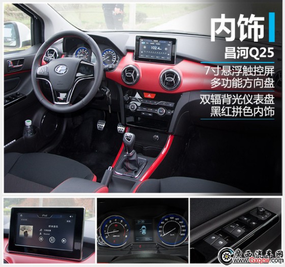 昌河Q25配備的7寸觸控顯示屏功能豐富且實(shí)用,除可顯示常規(guī)的收音機(jī)、空調(diào)及車內(nèi)功能設(shè)置外,還提供手機(jī)互聯(lián)功能,輕松實(shí)現(xiàn)手機(jī)音樂播放,速度感知音量調(diào)節(jié)功能使其在高速行駛中始終提供舒適的音樂氛圍。此外該系統(tǒng)還支持藍(lán)牙連接功能,可實(shí)現(xiàn)藍(lán)牙音樂及電話接聽,非常適合年輕化購車人群。此外其倒車影像功能還可現(xiàn)實(shí)清晰的倒車標(biāo)線,為新手駕駛者提供倒車安全保障,高配車型將配備GPS導(dǎo)航功能。