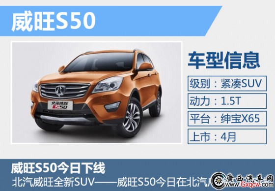 北汽威旺是北汽集團(tuán)旗下的微型商用車品牌,隨著國內(nèi)乘用車市場需求的日益增長,其產(chǎn)品結(jié)構(gòu)開始向乘用車領(lǐng)域轉(zhuǎn)移。按照規(guī)劃,北汽威旺將推出一款全新緊湊型城市SUV。網(wǎng)通社從北汽威旺官方獲悉,威旺緊湊型SUV——威旺S50將于今日在北汽廣州工廠下線,隨后將于4月北京車展正式上市,預(yù)售價格區(qū)間為8-10萬元。