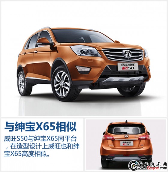 北汽威望S50的車身尺寸分別為4654*1816*1680毫米,軸距為2670毫米,定位于緊湊級SUV。北汽集團(tuán)在研發(fā)新車型的同時也采取了集團(tuán)內(nèi)部平臺共享的方式,包括發(fā)動機、變速箱、底盤等方面的共享,進(jìn)而促進(jìn)集團(tuán)內(nèi)部其他品牌的共同發(fā)展。北汽威旺S50正是在平臺共享的大背景下,基于北汽紳寶X65的平臺打造。