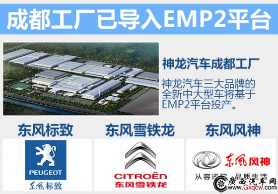 PSA集團(tuán)旗下的EMP2模塊化平臺(tái)在車(chē)型級(jí)別、車(chē)身尺寸、車(chē)身配置、動(dòng)力總成等方面,都可以根據(jù)不同的需求進(jìn)行調(diào)整,生產(chǎn)車(chē)型的軸距最長(zhǎng)可達(dá)到2,900毫米。目前,EMP2平臺(tái)已經(jīng)導(dǎo)入神龍第四工廠。根據(jù)神龍汽車(chē)的規(guī)劃,東風(fēng)標(biāo)致、東風(fēng)雪鐵龍以及東風(fēng)風(fēng)神未來(lái)將要推出的中大型車(chē)都將基于這一平臺(tái)投產(chǎn)。神龍成都工廠廠長(zhǎng)蘆從國(guó)表示:“今年10月第一款車(chē)量產(chǎn)后,2017年4月將會(huì)量產(chǎn)第二款車(chē),9月是第三款車(chē)!