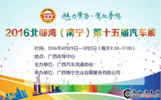 (廣西汽車網(wǎng) 訊)2016北部灣(南寧)第十五屆汽車展將于4月29日—5月2日(每天9:30—17:00)在南寧五象大道上的廣西體育中心B區(qū)南廣場(chǎng)華麗開展!