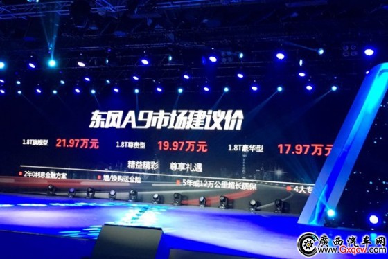 4月12日晚,東風(fēng)乘用車旗下東風(fēng)A9正式宣布上市,新車定位為C級(jí)轎車,基于PSA EMP2平臺(tái)打造并搭載1.8T+6AT動(dòng)力總成,共有X款車型可選,售價(jià)區(qū)間為17.97-21.97萬元,具體售價(jià)信息參看下表:
