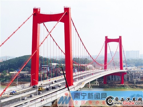 說起舊金山的金門大橋,不少人都知道。它是美國大片中出現(xiàn)頻率最高的大橋。近日,經(jīng)過青環(huán)路的市民都驚訝地發(fā)現(xiàn),邕江之上,也出現(xiàn)了一座神似金門大橋的跨江橋梁——良慶大橋。記者昨日從南寧城建集團(tuán)所屬縱橫公司獲悉,良慶大橋?qū)⒂诒驹碌讓崿F(xiàn)通車,目前正在進(jìn)行成橋試驗等收尾工作。