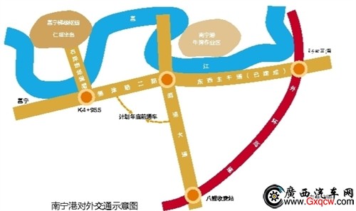 然而這樣一個(gè)在廣西堪稱巨無霸的港口,目前的疏港道路僅是一條三級(jí)路。按照規(guī)劃南寧市給牛灣作業(yè)區(qū)配備了發(fā)達(dá)的疏港大道,包括分兩個(gè)高速公路收費(fèi)站對(duì)接外環(huán)高速公路的東西向主干道、疏港大道,還有一條直通邕寧區(qū)蒲廟鎮(zhèn)的蒲津路改造二期工程。