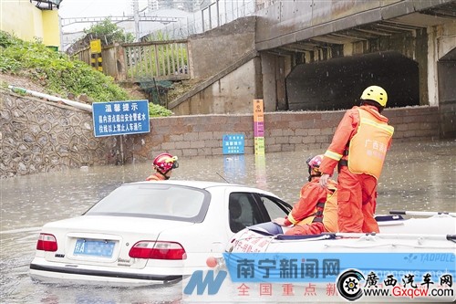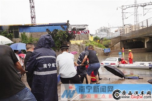 22時56分左右,一輛白色小轎車(桂A Q××23)從長堽路金牛橋夜市往葛村路方向,不聽從值班人員勸誡,強(qiáng)行沖過警戒線,在葛村路涵洞下溺水。街道值班人員和附近熱心群眾立即下水展開救援,但因車輛沖出距離較遠(yuǎn)搶救不及。車上一男一女自行爬出車廂后很快溺水失蹤。值班人員當(dāng)即報(bào)警,消防人員于23時29分到位開展搜救。23時40分,南寧市及青秀區(qū)相關(guān)部門、轄區(qū)街道領(lǐng)導(dǎo)相繼趕到現(xiàn)場,徹夜組織開展相關(guān)搶救工作。市政部門等組織3臺大功率抽水機(jī)開展抽水,消防隊(duì)員運(yùn)用沖鋒舟進(jìn)行搜救,因暴雨持續(xù)不斷致使水位逐漸上漲,消防隊(duì)員搜救未果,現(xiàn)場搜救指揮部根據(jù)澇情,及時調(diào)遣專業(yè)救援人員(蛙人)進(jìn)行專業(yè)搜救。