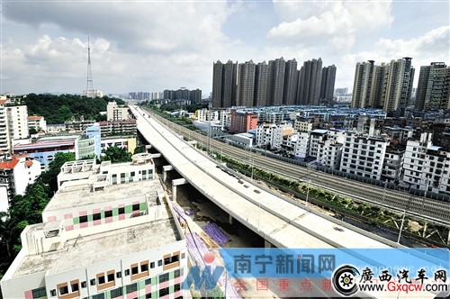 南寧新聞網(wǎng)-南寧晚報(bào)訊(記者 王志鵬)在民主園湖路口,東西向快速路飛架而過。鋼筋混凝土搭建的快速路從這里一直貫通至中華北湖路口。昨日,南寧城市東西向快速路西段(北湖南路—民主路)主線貫通。南寧東西向快速路西起清川大道,東至廂竹大道,全長(zhǎng)13.6公里。全建成后從南寧東側(cè)到西側(cè)僅需要半個(gè)小時(shí)左右。