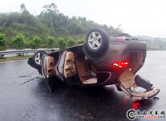 7月11日,廣西交警總隊高速管理支隊六大隊處理了一起典型的交通事故:一輛保時捷卡宴在高速公路打滑后,司機因經(jīng)驗不足,急剎車導致翻車,造成隨車的岳父手臂骨頭斷裂,岳母手掌斷掉……