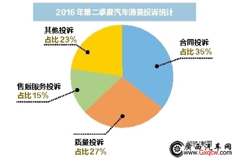 數(shù)據(jù)顯示,第二季度受理的汽車(chē)消費(fèi)投訴總量為165起,其中合同類(lèi)53起,質(zhì)量類(lèi)50起,售后服務(wù)類(lèi)25起,其他投訴37起。與第一季度相比,投訴總量環(huán)比下降26.3%。