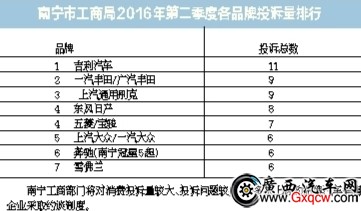 在各品牌投訴量的排名上,兩個(gè)季度的情況也有所不同。第二季度投訴量最高的吉利汽車(chē),投訴量共11起。