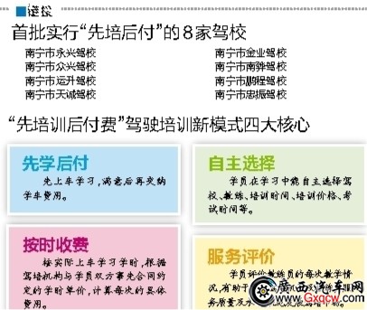 參加駕駛培訓(xùn)上一節(jié)課付一節(jié)課的錢,對(duì)教練不滿意可以隨時(shí)更換教練,查實(shí)駕校存在違規(guī)現(xiàn)象可以拒絕付款……昨日,記者從市運(yùn)管處獲悉,今年6月南寧市開始啟動(dòng)駕!坝(jì)時(shí)培訓(xùn)、按學(xué)時(shí)收費(fèi)、先培訓(xùn)后付費(fèi)”新服務(wù)模式,有8家駕校作為首批試點(diǎn)駕校。近日,自治區(qū)公安廳、交通廳聯(lián)合制定實(shí)施意見推行“先培后付”新模式,南寧市計(jì)劃年底前50%的駕校啟動(dòng)新模式,至2018年底實(shí)現(xiàn)推行率100%。
