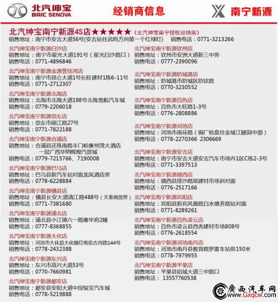 白沙店:南寧市星光大道191號(星光白沙路口) 銷售熱線:0771-4896846(工作時間:09:00-18:00) |