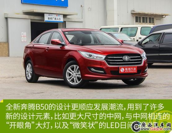 造型方面,全新奔騰B50采用最新家族式前臉,前進(jìn)氣格柵在保留經(jīng)典三橫幅樣式的基礎(chǔ)上,尺寸進(jìn)一步加大,前大燈造 型則更加犀利,前保險(xiǎn)杠兩側(cè)格柵內(nèi)配有LED日間行車燈。側(cè)面的腰線從中間至兩邊采用了漸變的設(shè)計(jì),前后凌厲,中間 比較舒緩,配合下部微微上揚(yáng)的棱線,整體看上去比較動(dòng)感。此外,新車運(yùn)動(dòng)版車型在前翼子板處嵌有“TURBO”的標(biāo)識(shí) ,同時(shí)尾部配備有后擾流板。