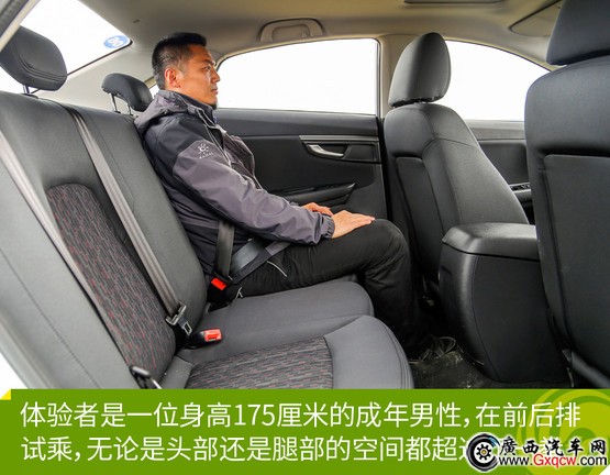 在乘坐空間上,體驗(yàn)者是一名身高175厘米的成年男性,在前后排試乘,無論是頭部還是腿部的空間都超過了一拳,而且中間的地臺(tái)也不算特別的高,對(duì)于大多數(shù)人來說都能提供比較舒適的乘車環(huán)境。