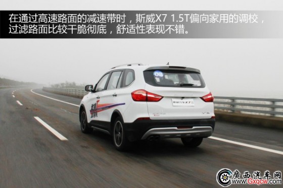 對于日常駕駛來說,斯威X7 1.5T更適合年輕家用消費者的選擇,在中低速行駛時隨著渦輪的介入可實現(xiàn)大扭矩輸出,動力上完全夠用,需要適應(yīng)的是偏高的離合結(jié)點和非線性的剎車系統(tǒng),熟練后配合平順的換擋操作,駕駛樂趣隨之而來。