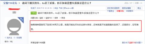 相比之下,寶駿730只是在原有3年6萬(wàn)公里的質(zhì)保期上,推出了延保政策,堅(jiān)持去4S店保養(yǎng),就意味著要花更多的養(yǎng)車成本。同時(shí),根據(jù)論壇口碑的反饋來看,經(jīng)銷商似乎并沒有給予車主明確的質(zhì)保范圍。若真是如此,寶駿730終端的執(zhí)行力和服務(wù)質(zhì)量,很難保障。