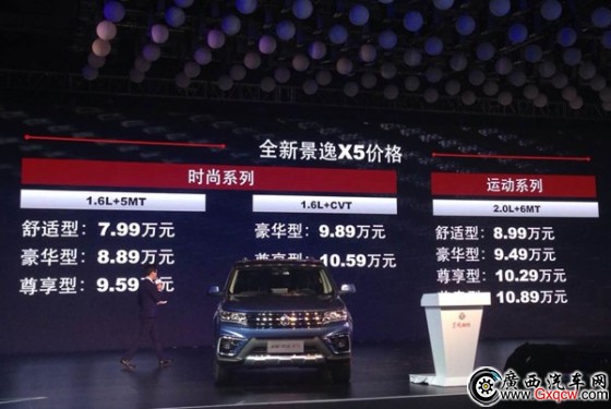 12月17日,東風(fēng)風(fēng)行全新景逸X5正式宣布上市,新車采用全新設(shè)計理念,造型大氣、配置豐厚,且裝配多連桿獨立后懸,并推出8年或16萬公里的超長質(zhì)保,有1.6L/2.0L兩種動力共9款車型可選,售價區(qū)間為7.99萬-10.89萬元,具體信息參看下表: