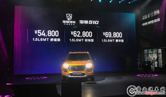 2月20日,寶駿510正式上市,新車定位小型SUV,提供1.5L+6MT一種動力共三款車型,售價5.48-6.98萬元,具體價格見下表。