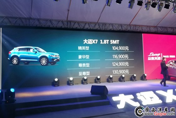 3月22日,眾泰大邁第二款車型——大邁X7正式上市,新車定位為五座中型SUV,搭載1.8T渦輪增壓發(fā)動機,全系共推出4款車型,售價區(qū)間為10.49-13.09萬元,具體售價信息參看下表: