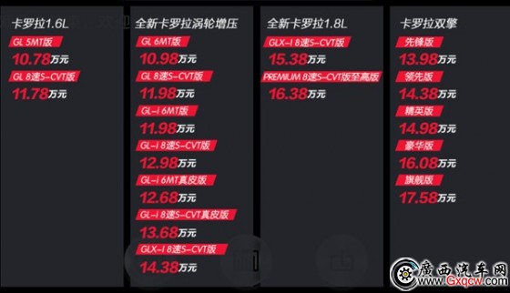 | 1.8L | GLX-L 8速S-CVT版 | 15.38 |