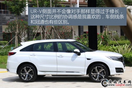 UR-V的特別之處不僅在于它另類的只推5座,外形也是其亮點(diǎn)之一,這一點(diǎn)從側(cè)面展露無疑。一來它的尺寸已經(jīng)算的上主流中級(jí)SUV水平,車長已經(jīng)超過4800mm,車側(cè)給人的感覺完全不像漢蘭達(dá)、銳界那樣修長,而是更為協(xié)調(diào)飽滿,這一點(diǎn)我倒是挺喜歡的。另外,它尾部這種類似溜背式的造型確實(shí)也很特別,至少?zèng)]有幾個(gè)廠家敢這么做。