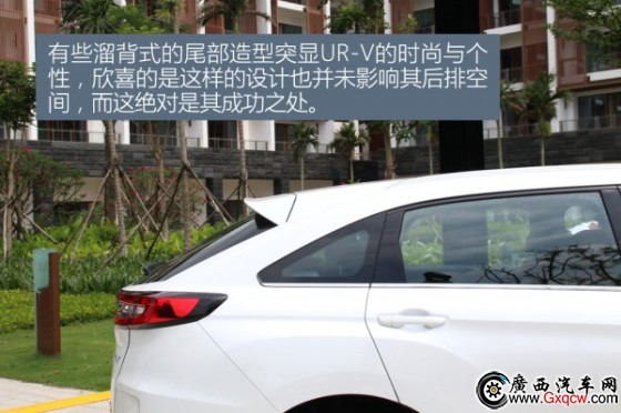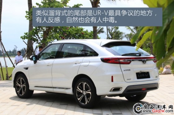如果你先從正前方開始打量這臺(tái)UR-V之后,再去觀察其后方,肯定會(huì)讓覺得詫異。主要是可能完全想不到前后的畫風(fēng)轉(zhuǎn)變得這么快。當(dāng)然是驚喜驚嚇不好說,這個(gè)看各自審美了。這必然會(huì)成為UR-V日后最具爭議的地方,有人或許會(huì)因?yàn)檫@個(gè)溜背式設(shè)計(jì)而愛上它,而自然有人會(huì)因此而一票否決它。