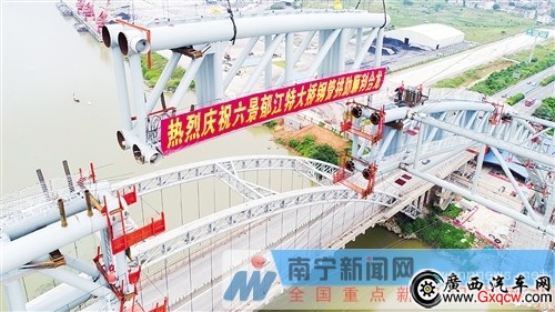 據(jù)介紹,拱肋合龍后,六景郁江特大橋?qū)⑦M(jìn)行橫撐焊接施工,7月份對鋼管拱肋進(jìn)行混凝土澆筑,8月份轉(zhuǎn)入橋面安裝施工,開始吊裝大橋橋面。“按照計(jì)劃,這座大橋?qū)⒃诮衲甑捉ǔ,達(dá)到通車條件!