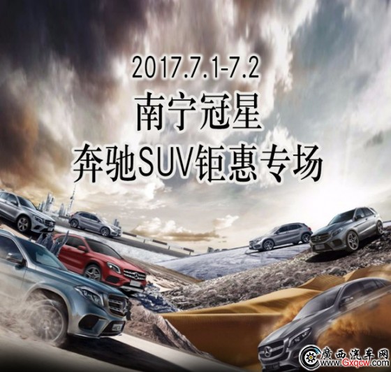 (廣西汽車網(wǎng) 訊)編輯從車市了解到,2017年7月1-2日,冠星奔馳SUV專場鉅惠活動(dòng)將盛大開啟,提供三重大禮,想了解奔馳的網(wǎng)友可以看看。