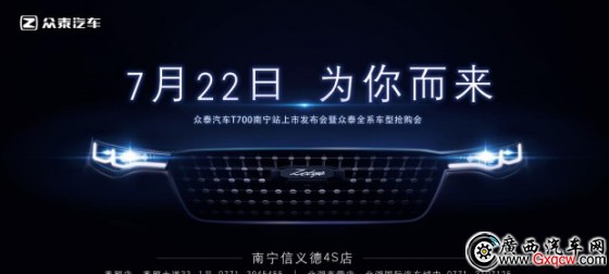 (廣西汽車網(wǎng) 訊)近日編輯從南寧市信義德眾泰汽車4S店了解到,7月22日眾泰T700南寧站上市發(fā)布會暨眾泰全系搶購會將在南寧銀林山莊舉行。眾泰告訴你熱銷“福利”擋不住、“優(yōu)惠”擋不住7月22日、有優(yōu)惠!有折扣!南寧站上市發(fā)布會暨全系搶購會,限時大優(yōu)惠。即日起開始預(yù)售誠意券199元當日誠意券還可以扣3000元購車優(yōu)惠即刻起報名可獲得以下優(yōu)惠: