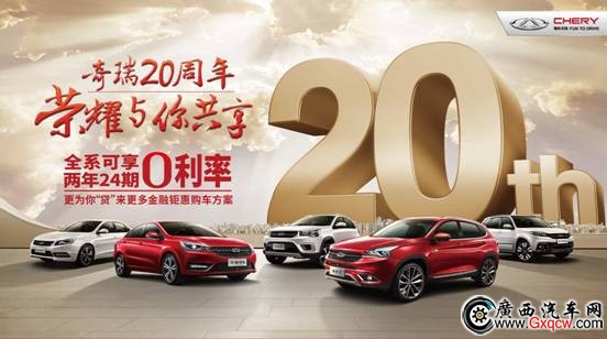 20年,記錄了奇瑞人風(fēng)雨同舟、和衷共濟(jì)的光輝歲月;亦開啟了奇瑞汽車昂揚(yáng)向上、蓄勢待發(fā)的新征程。值奇瑞20周年之際,為答謝廣大消費(fèi)者長期以來的支持與信任,奇瑞汽車特別推出“奇瑞20周年 榮耀與你共享”促銷活動(dòng):