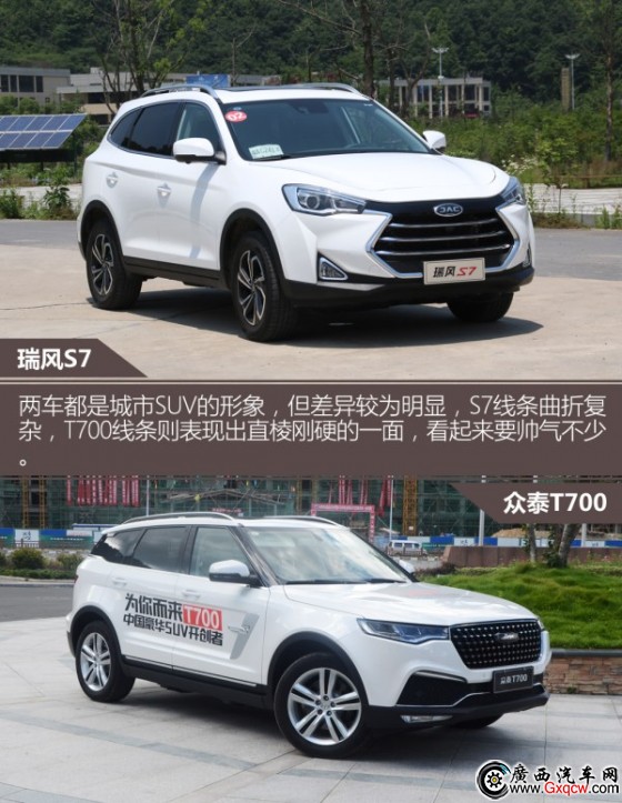 今天對(duì)比的主角分別是江淮瑞風(fēng)S7和眾泰T700。從廠家自己給的定位來說,兩車并不是一個(gè)級(jí)別。但從消費(fèi)者角度來看,兩車尺寸相當(dāng),價(jià)格重合范圍區(qū)間廣,并且都屬于近期上市的新車型,所以有必要來分個(gè)勝負(fù)。