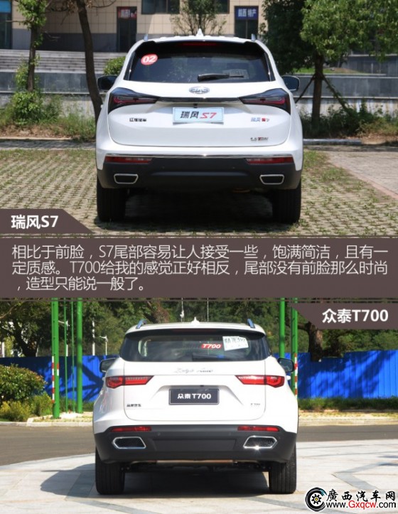相比于前臉,S7尾部容易讓人接受一些,飽滿簡潔,尾燈也展現(xiàn)出了很強(qiáng)的質(zhì)感,雙邊排氣盡管只是裝飾,但對(duì)于美觀度的提升功不可沒。T700給我的感覺正好相反,尾部沒有前臉那么時(shí)尚,造型只能說很普通。雙排氣同樣也只是裝飾。