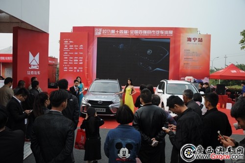 海寧站第二天上午,陸風(fēng)汽車海寧康順4S店在主舞臺(tái)前為陸風(fēng)X2舉辦了一場(chǎng)新車上市發(fā)布活動(dòng),引起在場(chǎng)很多觀眾的圍觀。該店一位銷售人員向觀眾詳細(xì)介紹了新車。