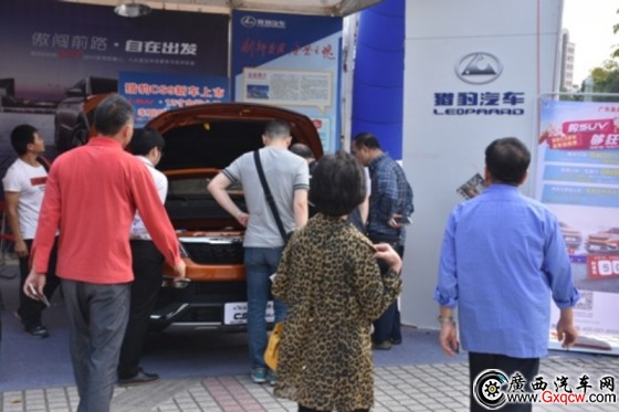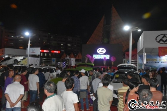 新會站第一天晚上,獵豹汽車經(jīng)銷商利用夜場良好的人氣和氛圍,在現(xiàn)場舉辦了一場新車發(fā)布活動,隆重地向密密麻麻的在場消費者介紹了獵豹CS9。