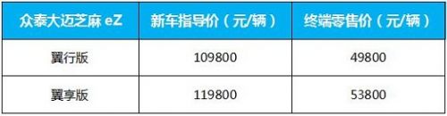 新車共推出兩款配置——翼行版和翼享版,官方指導(dǎo)售價(jià)分別為4.98萬和5.38萬,在同級別新能源汽車中極具競爭力,其中續(xù)航里程全線升級,NEDC綜合續(xù)航里程達(dá)210km,最高時(shí)速可達(dá)到110km/h。