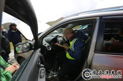 很慶幸清行團(tuán)隊為這次出發(fā)做足了準(zhǔn)備,在環(huán)境惡劣的青藏高原上不僅可以自救,還能幫到沿途需要幫助的人。在米拉山口,清行團(tuán)隊遇到了一隊自駕游團(tuán)隊,開著兩輛車爬坡卻雙雙癱瘓在路上,在隨行汽車工程師的幫助下車子很快被修好,但卻因為高原地區(qū)氧氣稀薄,發(fā)動機(jī)一直無法打火?吹郊钡孟駸徨伾衔浵伒能囍,清行隊員二話不說貢獻(xiàn)出了自帶的氧氣讓車子成功啟動。