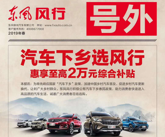 號(hào)外號(hào)外,為滿足城鄉(xiāng)消費(fèi)者對(duì)于汽車的消費(fèi)升級(jí),國家時(shí)隔十年后再次重磅推出汽車下鄉(xiāng)政策,而東風(fēng)風(fēng)行品牌作為人盡皆知的大品牌,率先攜旗下車型積極響應(yīng)國家政策,開展汽車下鄉(xiāng)惠萬家活動(dòng)已將近兩個(gè)月,眾多城鄉(xiāng)消費(fèi)者已加入風(fēng)行大家庭,成為風(fēng)行車主。