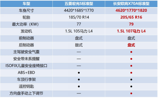 作為一款5萬左右的車型,厚道的配置也是消費(fèi)者購車的衡量標(biāo)準(zhǔn)之一。在價(jià)格差異不大的情況下,長安歐尚X70A比五菱宏光S多出了安全氣囊、四盤碟剎、安全帶未系提醒、方向盤手動(dòng)上下調(diào)節(jié)、ISOFIX兒童安全座椅接口等配置,配置豐富更安全,性價(jià)比更高。