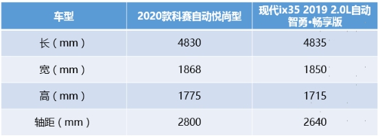 再看2020款科賽,對(duì)比兩車的數(shù)據(jù)可以看出,2020款科賽在車身尺寸方面占有明顯的優(yōu)勢(shì),長(zhǎng)度多了395mm,寬度多了18mm,高度多了60mm,別小看這些多出來(lái)的數(shù)據(jù),這些可以換來(lái)更充裕的頭部空間和橫向乘坐空間,另外2800mm軸距也比現(xiàn)代ix35要長(zhǎng)出160mm,這同級(jí)最長(zhǎng)的軸距優(yōu)勢(shì)讓2020款科賽的車內(nèi)腿部空間更寬裕。